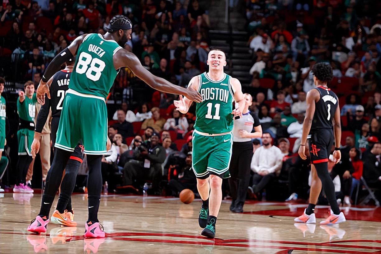 本场比赛中,凯尔特人的先发中锋内米亚斯-克塔(Neemias Queta)的表现令人刮目相看。克塔全场出场38分55秒,投篮4中3,罚球4中4,得到了10分19篮板2助攻2抢断5盖帽的两双数据,其中还包括了7个前场篮板,还有2次失误和2次犯规,正负值更是达到了全场最高的+22。克塔在进攻端虽然没有完成更多的出手,但是他在对手内线各种翻江倒海,拿到了不少前场篮板。最关键的是,克塔在防守端的表现非常抢眼,他展现出了超强的护框能力和后场篮板保护能力,他在这方面的表现绝对是顶级水平。克塔可以说是完全压制了火箭内线支柱阿尔佩伦-申京(Alperen Sengun),导致了申京没有办法发挥出自己的最佳水准,到了最后时刻还出现了心态方面的失衡。
